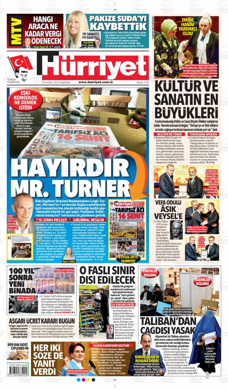 * Günün Ulusal Gazete Manşetleri – 22 12 2022Ulusal Gazetelerin 1. sayfaları Haber Merkezi Yayınlanma: 22.12.2022 - 11:50 Son güncellenme: 28.01.2025 - 08:50 Hürriyet