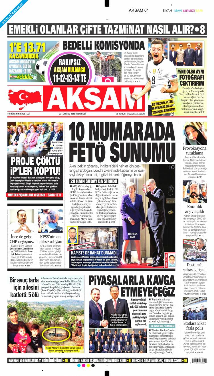 * Günün Ulusal Gazete Manşetleri – 23 07 2018Ulusal Gazetelerin 1. sayfaları Haber Merkezi Yayınlanma: 23.07.2018 - 11:50 Son güncellenme: 29.01.2025 - 08:23 Akşam