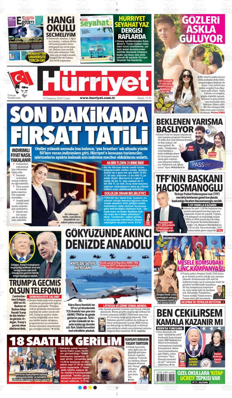 * Günün Ulusal Gazete Manşetleri – 23 07 2024Ulusal Gazetelerin 1. sayfaları Haber Merkezi Yayınlanma: 23.07.2024 - 11:50 Son güncellenme: 28.01.2025 - 00:50 Hürriyet