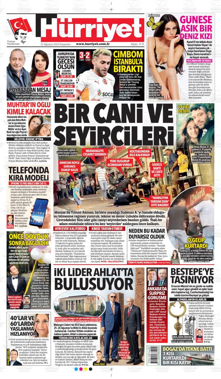 * Günün Ulusal Gazete Manşetleri – 23 08 2024Ulusal Gazetelerin 1. sayfaları Haber Merkezi Yayınlanma: 23.08.2024 - 11:50 Son güncellenme: 28.01.2025 - 00:25 Hürriyet