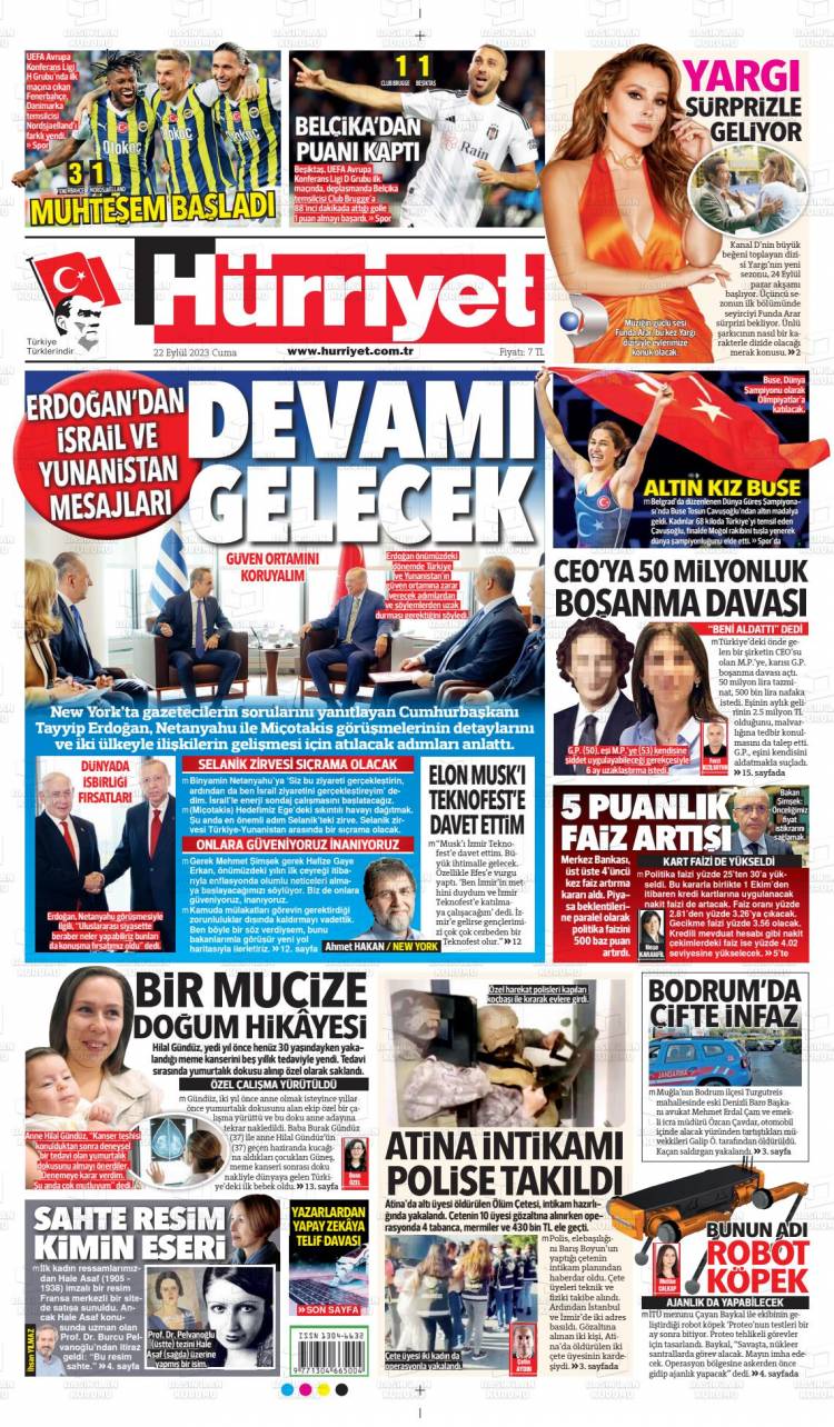* Günün Ulusal Gazete Manşetleri – 23 09 2023Ulusal Gazetelerin 1. sayfaları Haber Merkezi Yayınlanma: 23.09.2023 - 11:50 Son güncellenme: 28.01.2025 - 05:15 Hürriyet