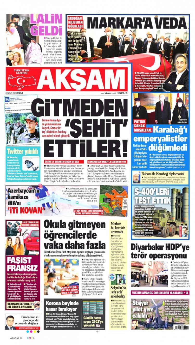 * Günün Ulusal Gazete Manşetleri – 23 10 2020Ulusal Gazetelerin 1. sayfaları Haber Merkezi Yayınlanma: 23.10.2020 - 11:50 Son güncellenme: 28.01.2025 - 19:51 Akşam