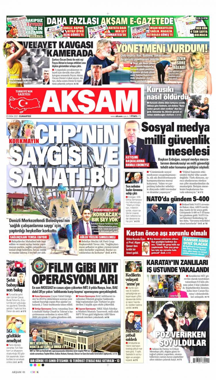 * Günün Ulusal Gazete Manşetleri – 23 10 2021Ulusal Gazetelerin 1. sayfaları Haber Merkezi Yayınlanma: 23.10.2021 - 11:50 Son güncellenme: 28.01.2025 - 14:43 Akşam