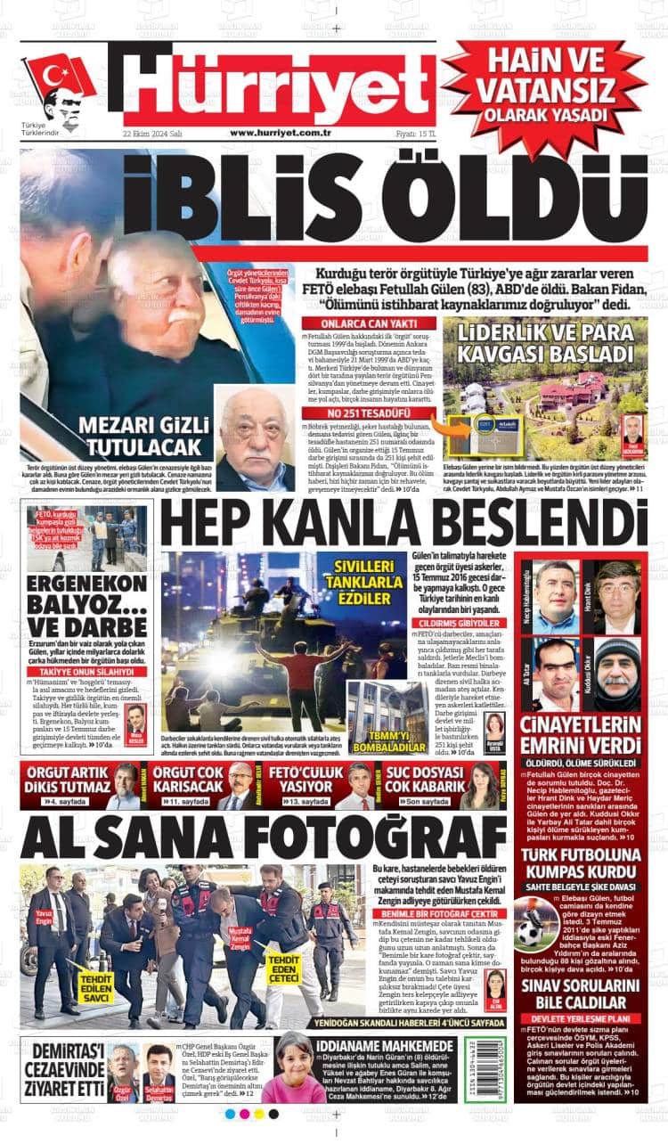 * Günün Ulusal Gazete Manşetleri – 23 10 2024Ulusal Gazetelerin 1. sayfaları Haber Merkezi Yayınlanma: 23.10.2024 - 11:50 Son güncellenme: 27.01.2025 - 23:34 Hürriyet
