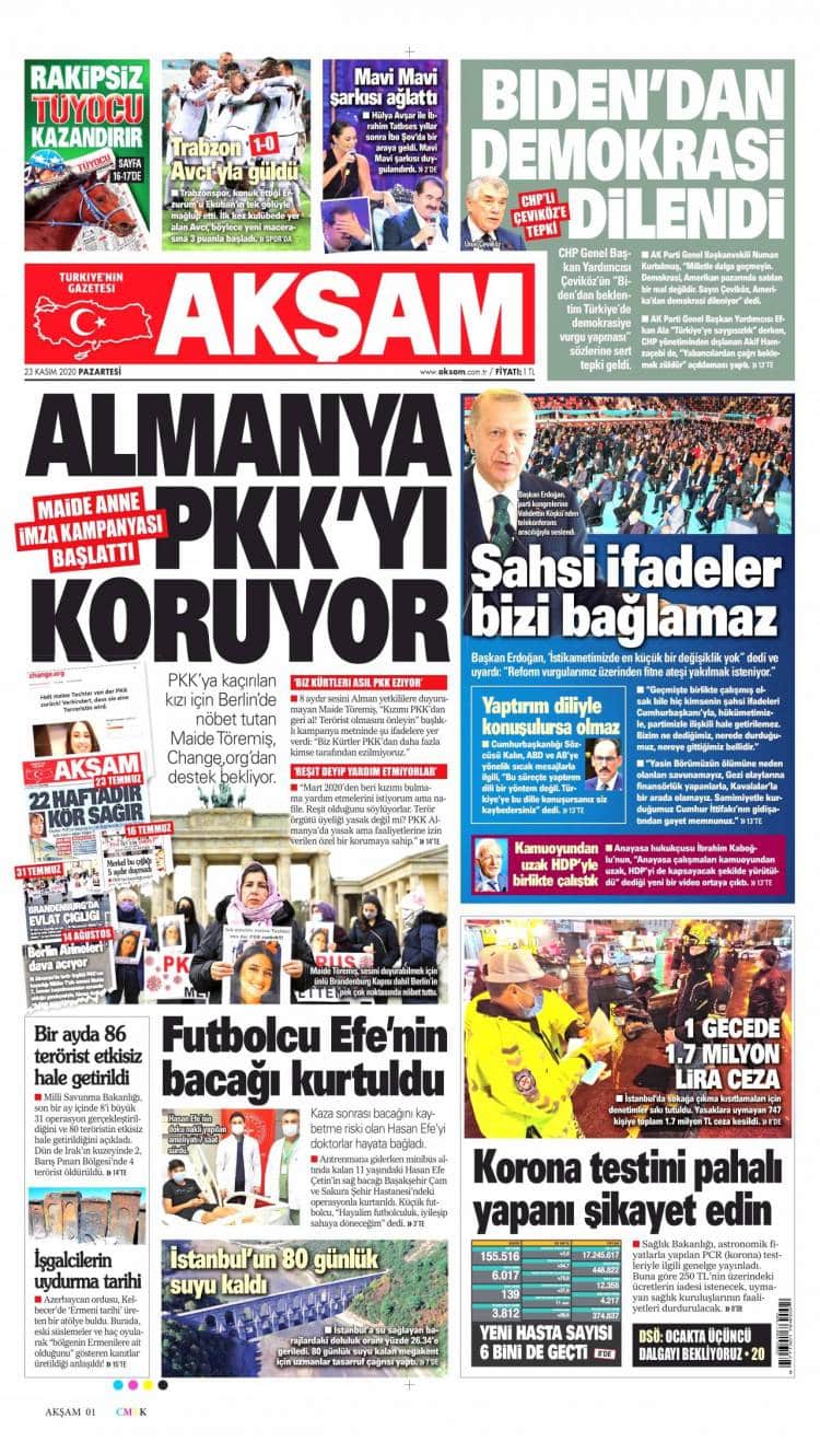 Günün Ulusal Gazete Manşetleri – 23 11 2020Ulusal Gazetelerin 1. sayfaları Haber Merkezi Yayınlanma: 23.11.2020 - 11:50 Son güncellenme: 28.01.2025 - 19:24 Akşam