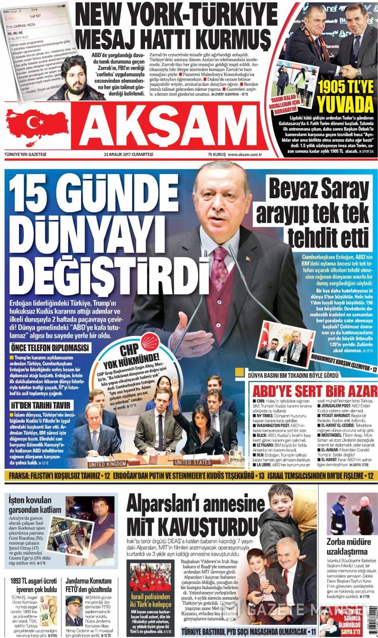 * Günün Ulusal Gazete Manşetleri – 23 12 2017Ulusal Gazetelerin 1. sayfaları Haber Merkezi Yayınlanma: 23.12.2017 - 11:50 Son güncellenme: 29.01.2025 - 13:56 Akşam