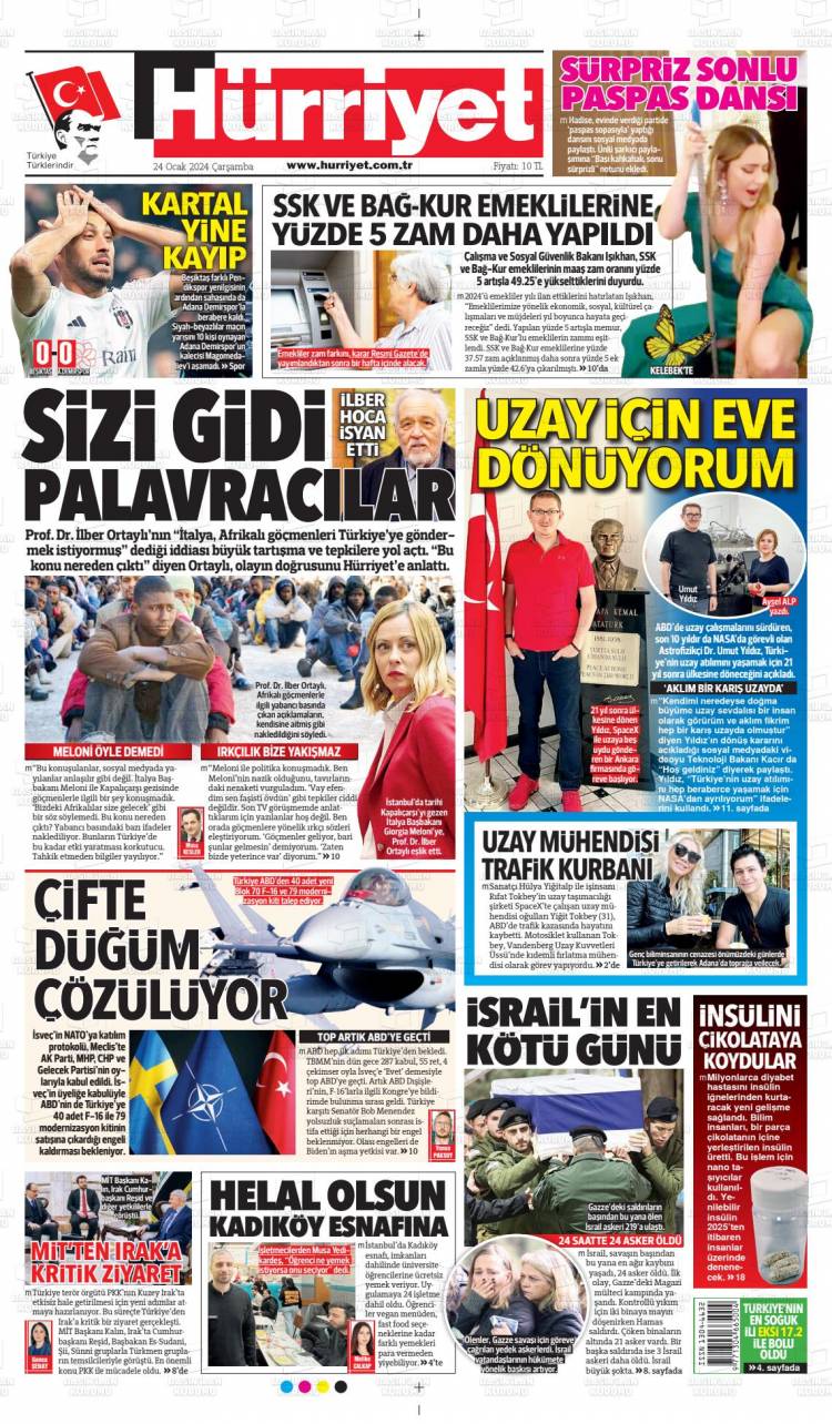 * Günün Ulusal Gazete Manşetleri – 24 01 2024Ulusal Gazetelerin 1. sayfaları Haber Merkezi Yayınlanma: 24.01.2024 - 11:50 Son güncellenme: 28.01.2025 - 03:24 Hürriyet