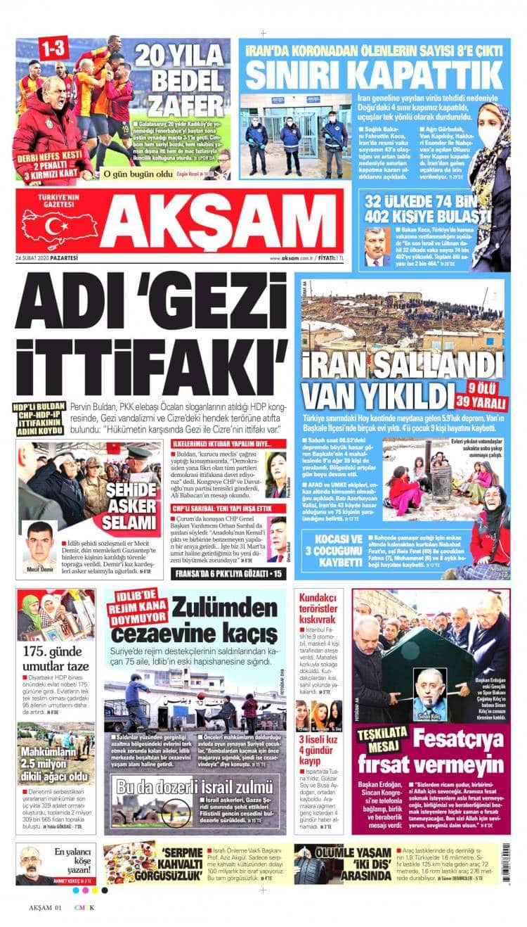 * Günün Ulusal Gazete Manşetleri – 24 02 2020Ulusal Gazetelerin 1. sayfaları Haber Merkezi Yayınlanma: 24.02.2020 - 11:50 Son güncellenme: 28.01.2025 - 23:29 Akşam