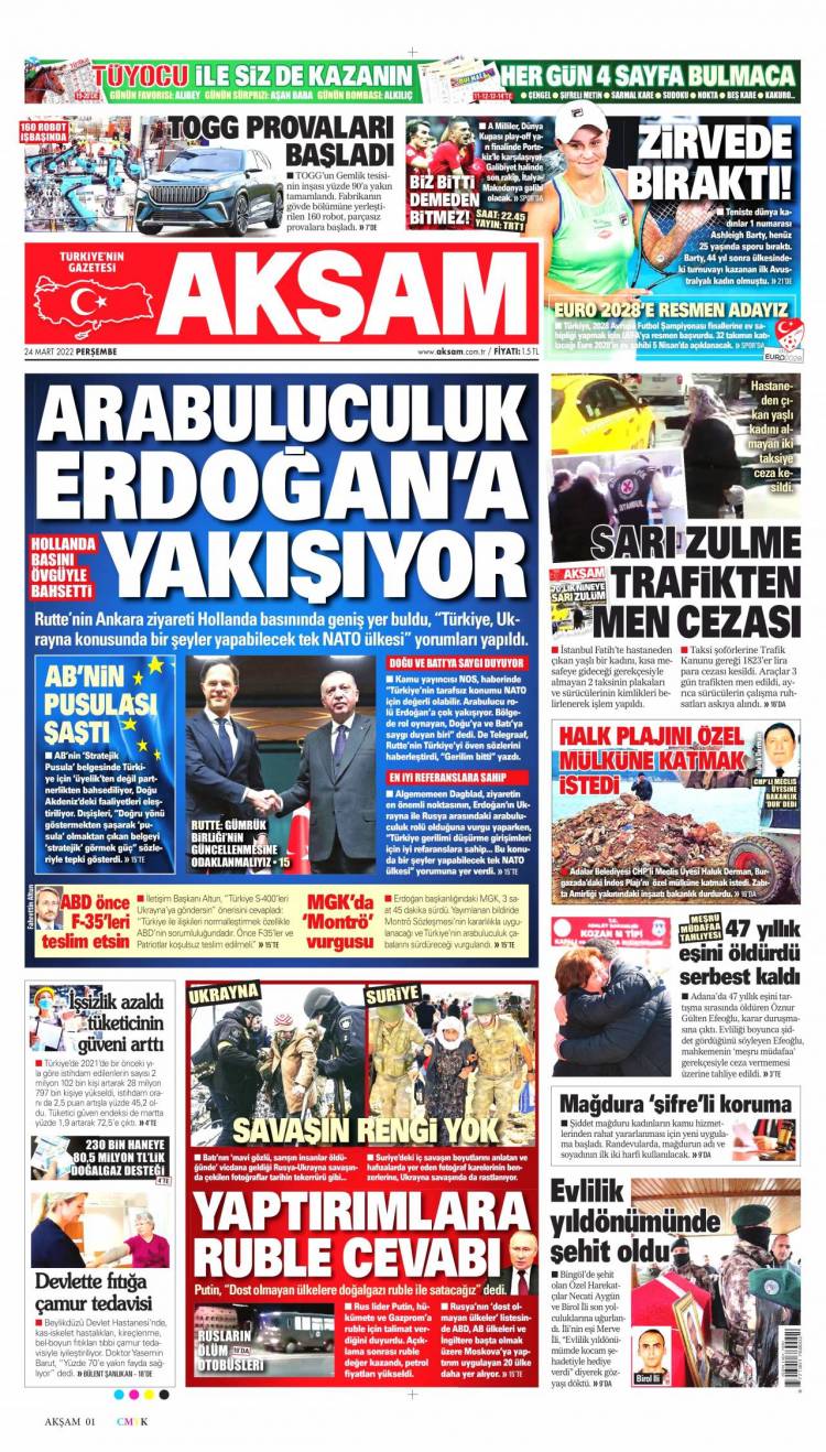 Günün Ulusal Gazete Manşetleri – 24 03 2022Ulusal Gazetelerin 1. sayfaları Haber Merkezi Yayınlanma: 24.03.2022 - 11:50 Son güncellenme: 28.01.2025 - 12:35 Akşam