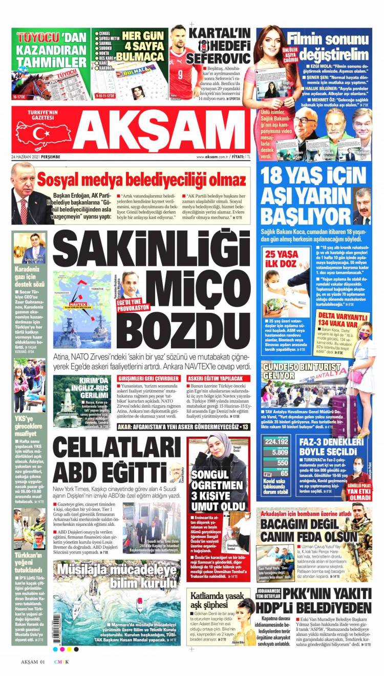 Günün Ulusal Gazete Manşetleri – 24 06 2021Ulusal Gazetelerin 1. sayfaları Haber Merkezi Yayınlanma: 24.06.2021 - 11:50 Son güncellenme: 28.01.2025 - 16:25 Akşam