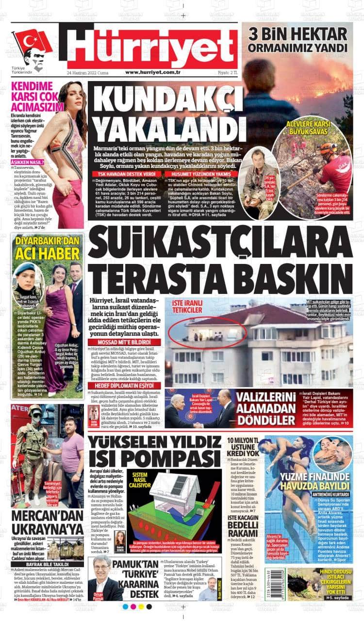 * Günün Ulusal Gazete Manşetleri – 24 06 2022Ulusal Gazetelerin 1. sayfaları Haber Merkezi Yayınlanma: 24.06.2022 - 11:50 Son güncellenme: 28.01.2025 - 11:15 Hürriyet