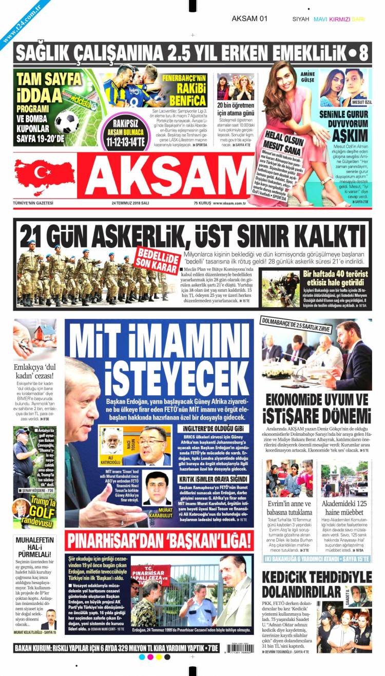 * Günün Ulusal Gazete Manşetleri – 24 07 2018Ulusal Gazetelerin 1. sayfaları Haber Merkezi Yayınlanma: 24.07.2018 - 11:50 Son güncellenme: 29.01.2025 - 08:21 Akşam