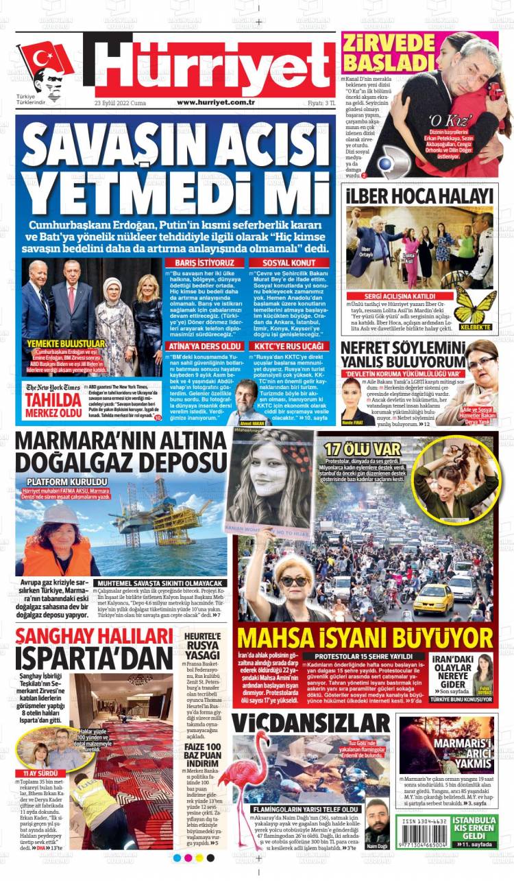 * Günün Ulusal Gazete Manşetleri – 24 09 2022Ulusal Gazetelerin 1. sayfaları Haber Merkezi Yayınlanma: 24.09.2022 - 11:50 Son güncellenme: 28.01.2025 - 10:00 Hürriyet