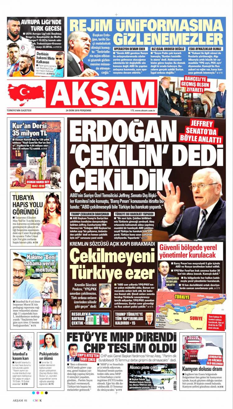 Günün Ulusal Gazete Manşetleri – 24 10 2019Ulusal Gazetelerin 1. sayfaları Haber Merkezi Yayınlanma: 24.10.2019 - 11:50 Son güncellenme: 29.01.2025 - 00:48 Akşam