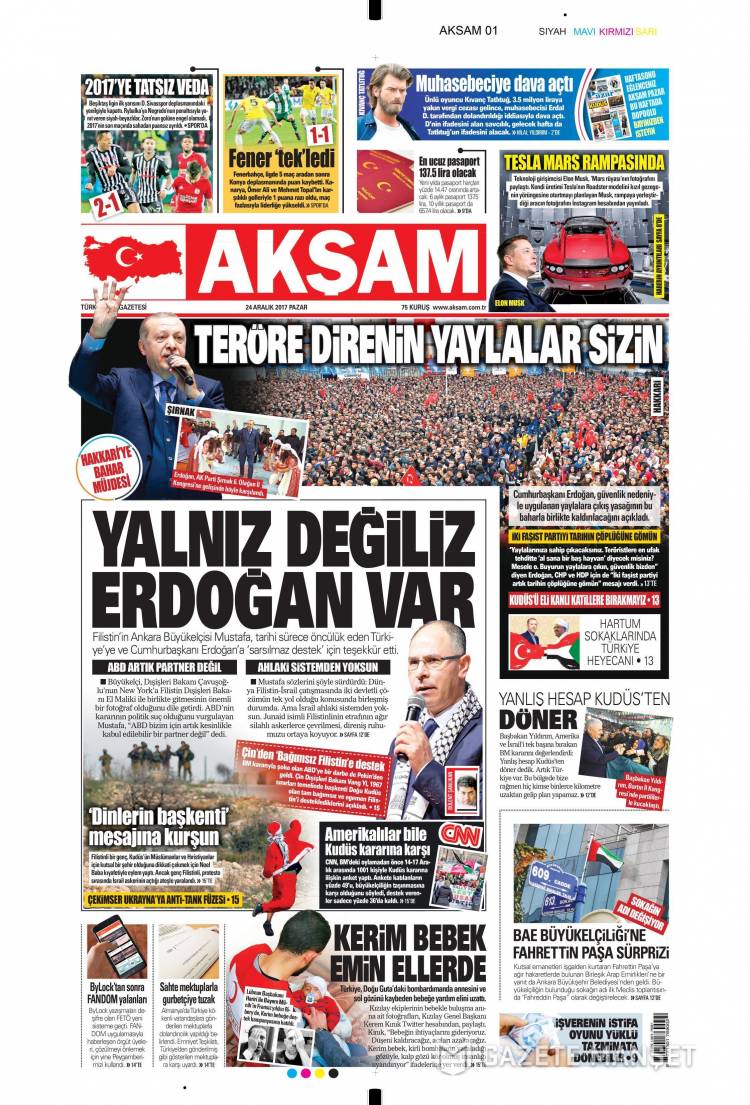 * Günün Ulusal Gazete Manşetleri – 24 12 2017Ulusal Gazetelerin 1. sayfaları Haber Merkezi Yayınlanma: 24.12.2017 - 11:50 Son güncellenme: 29.01.2025 - 13:55 Akşam