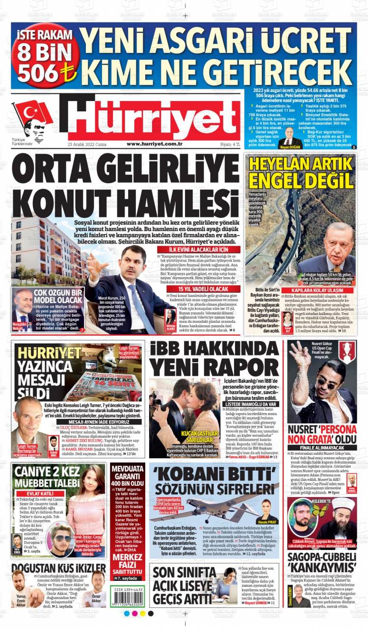 * Günün Ulusal Gazete Manşetleri – 24 12 2022Ulusal Gazetelerin 1. sayfaları Haber Merkezi Yayınlanma: 24.12.2022 - 11:50 Son güncellenme: 28.01.2025 - 08:48 Hürriyet