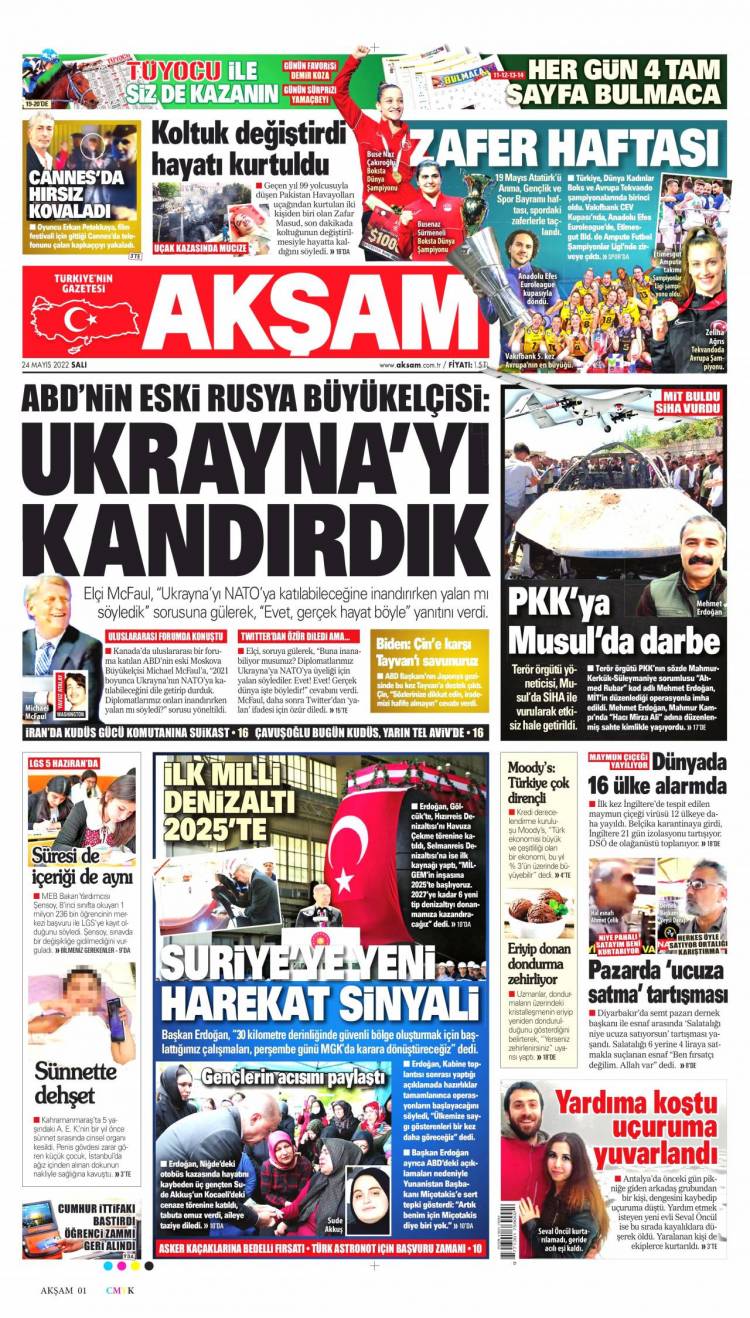 * Günün Ulusal Gazete Manşetleri – 25 05 2022Ulusal Gazetelerin 1. sayfaları Haber Merkezi Yayınlanma: 25.05.2022 - 11:50 Son güncellenme: 28.01.2025 - 11:40 Akşam