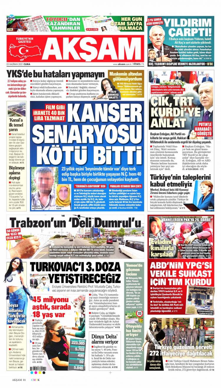 Günün Ulusal Gazete Manşetleri – 25 06 2021Ulusal Gazetelerin 1. sayfaları Haber Merkezi Yayınlanma: 25.06.2021 - 11:50 Son güncellenme: 28.01.2025 - 16:24 Akşam
