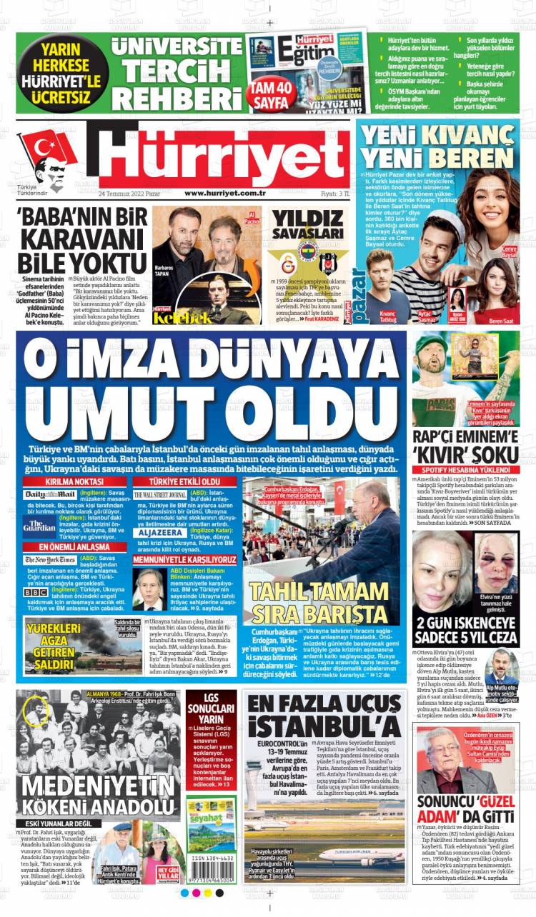 * Günün Ulusal Gazete Manşetleri – 25 07 2022Ulusal Gazetelerin 1. sayfaları Haber Merkezi Yayınlanma: 25.07.2022 - 11:50 Son güncellenme: 28.01.2025 - 10:51 Hürriyet