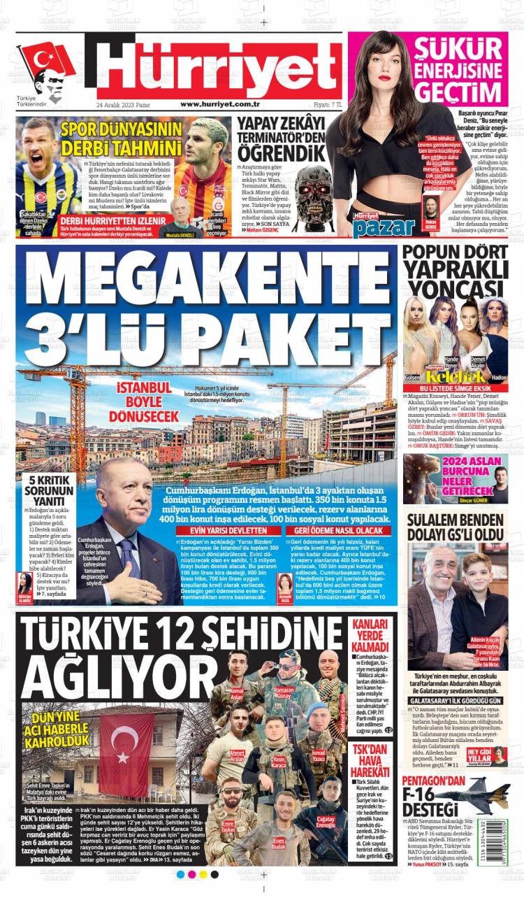 Günün Ulusal Gazete Manşetleri – 25 12 2023Ulusal Gazetelerin 1. sayfaları Haber Merkezi Yayınlanma: 25.12.2023 - 11:50 Son güncellenme: 28.01.2025 - 03:51 Hürriyet