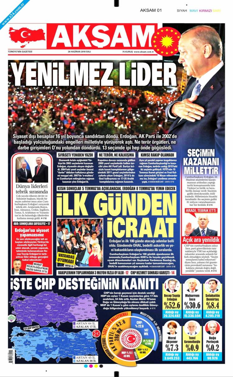 * Günün Ulusal Gazete Manşetleri – 26 06 2018Ulusal Gazetelerin 1. sayfaları Haber Merkezi Yayınlanma: 26.06.2018 - 11:50 Son güncellenme: 29.01.2025 - 08:56 Akşam