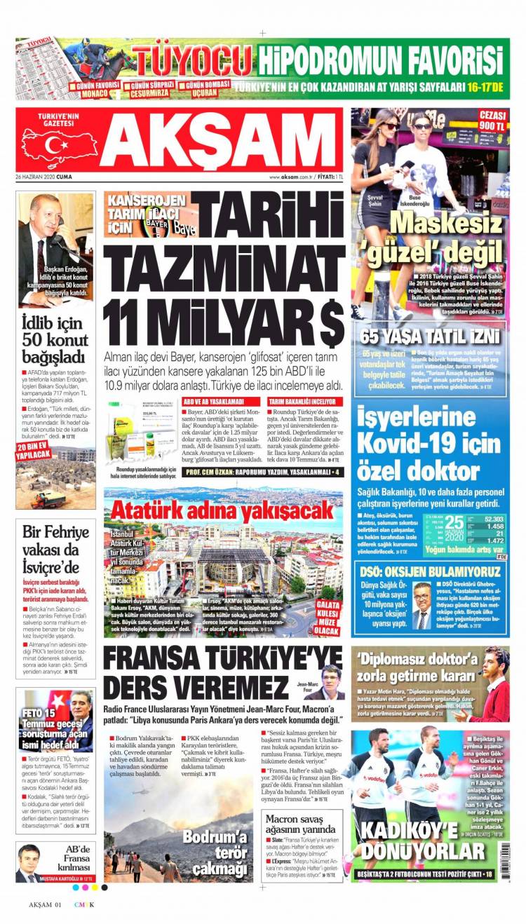 Günün Ulusal Gazete Manşetleri – 26 06 2020Ulusal Gazetelerin 1. sayfaları Haber Merkezi Yayınlanma: 26.06.2020 - 11:50 Son güncellenme: 28.01.2025 - 21:39 Akşam