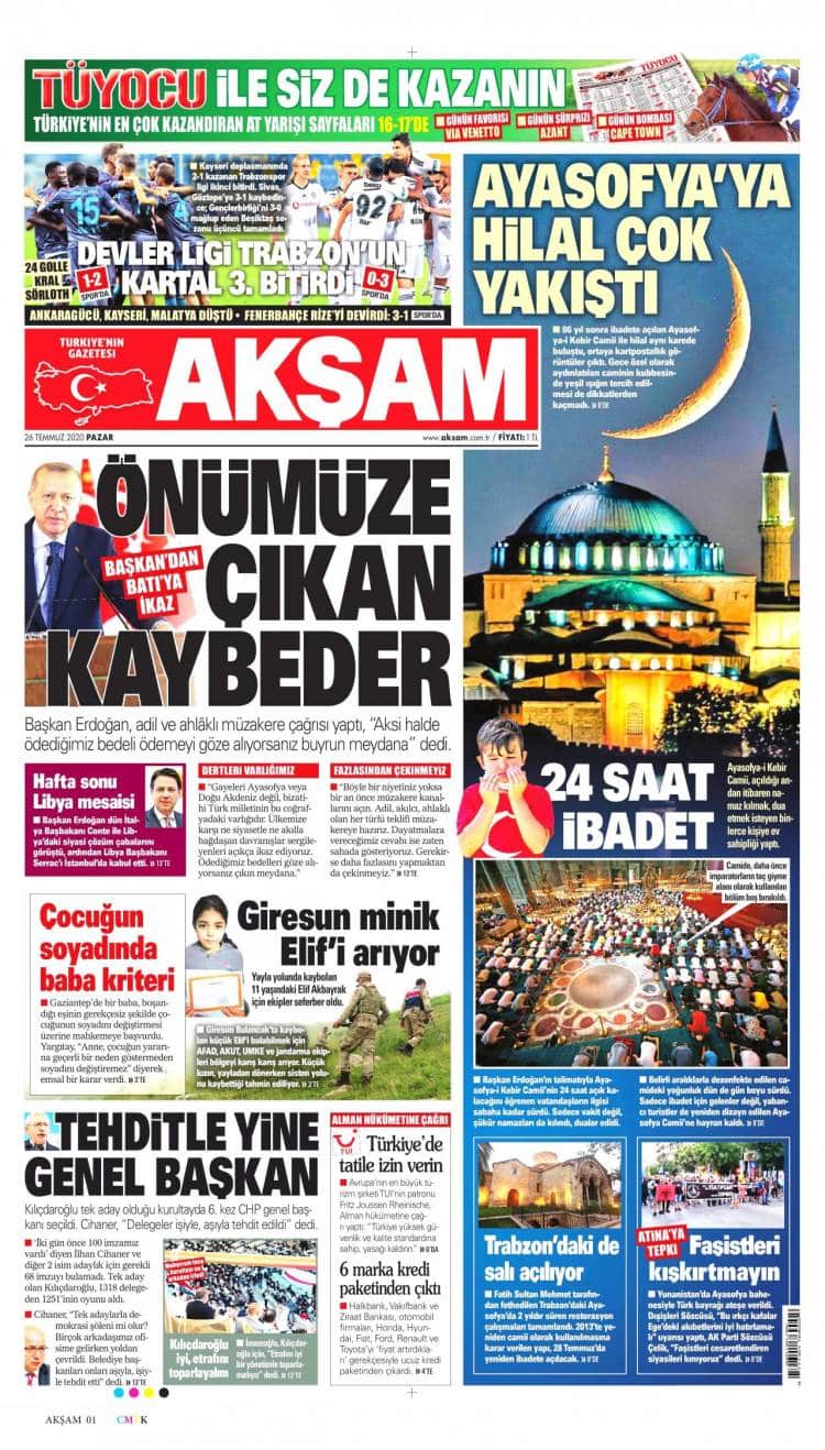 * Günün Ulusal Gazete Manşetleri – 26 07 2020Ulusal Gazetelerin 1. sayfaları Haber Merkezi Yayınlanma: 26.07.2020 - 11:50 Son güncellenme: 28.01.2025 - 21:10 Akşam