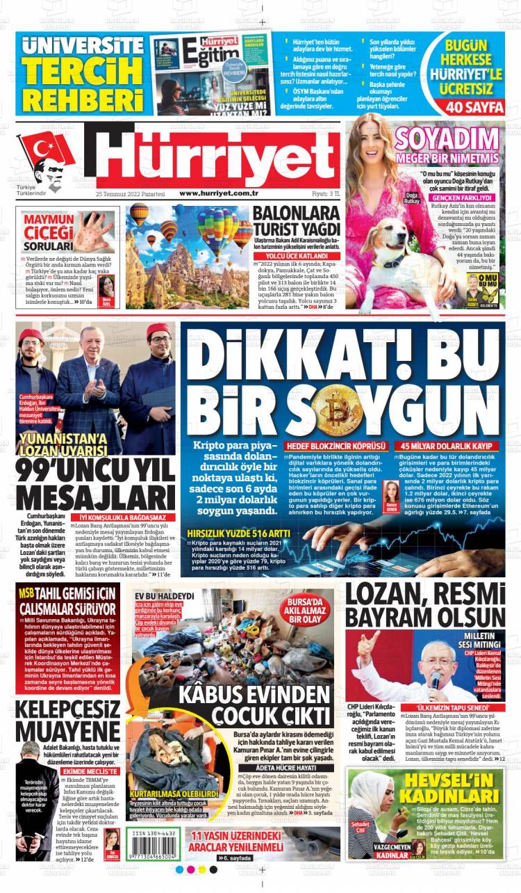 Günün Ulusal Gazete Manşetleri – 26 07 2022Ulusal Gazetelerin 1. sayfaları Haber Merkezi Yayınlanma: 26.07.2022 - 11:50 Son güncellenme: 28.01.2025 - 10:50 Hürriyet