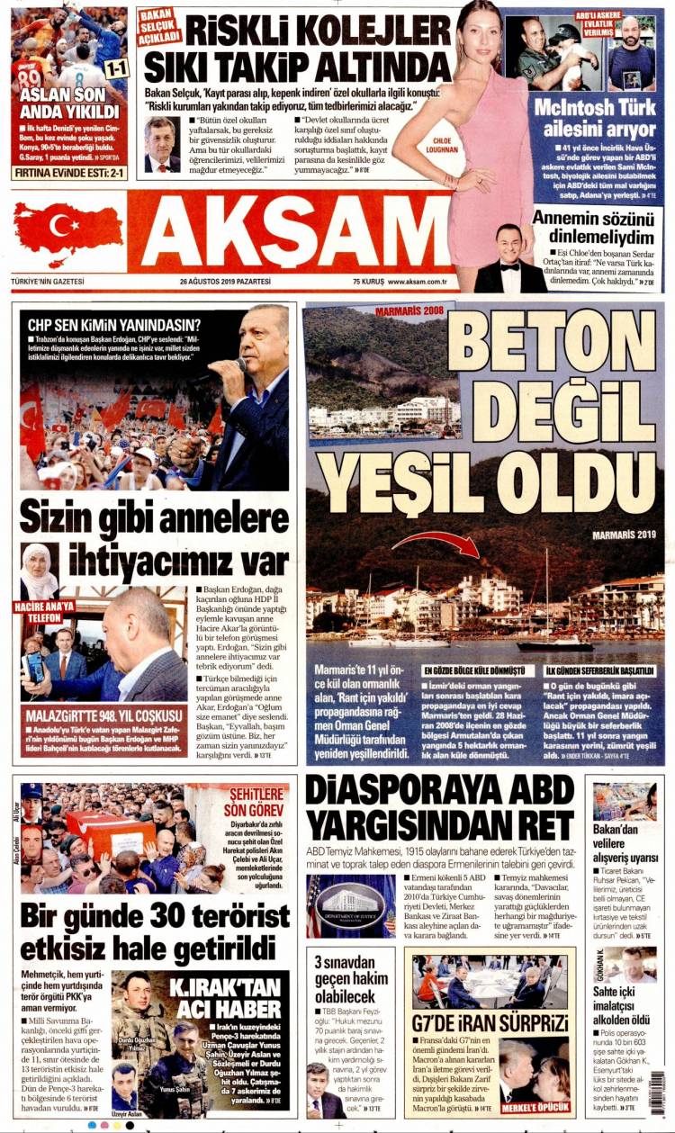 * Günün Ulusal Gazete Manşetleri – 26 08 2019Ulusal Gazetelerin 1. sayfaları Haber Merkezi Yayınlanma: 26.08.2019 - 11:50 Son güncellenme: 29.01.2025 - 01:38 Akşam
