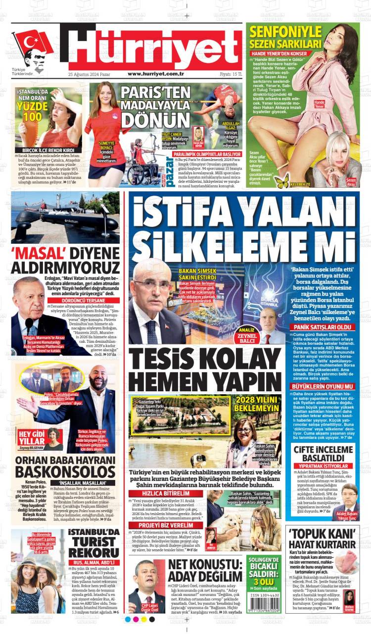 * Günün Ulusal Gazete Manşetleri – 26 08 2024Ulusal Gazetelerin 1. sayfaları Haber Merkezi Yayınlanma: 26.08.2024 - 11:50 Son güncellenme: 28.01.2025 - 00:22 Hürriyet