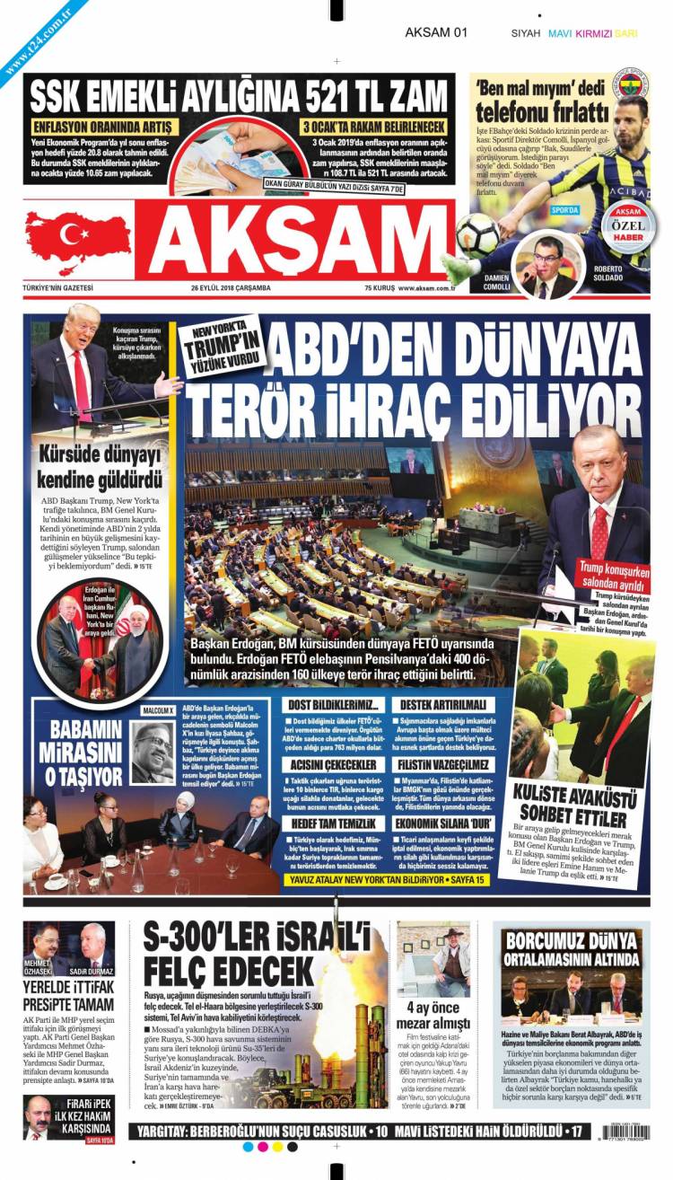 Günün Ulusal Gazete Manşetleri – 26 09 2018Ulusal Gazetelerin 1. sayfaları Haber Merkezi Yayınlanma: 26.09.2018 - 11:50 Son güncellenme: 29.01.2025 - 07:02 Akşam