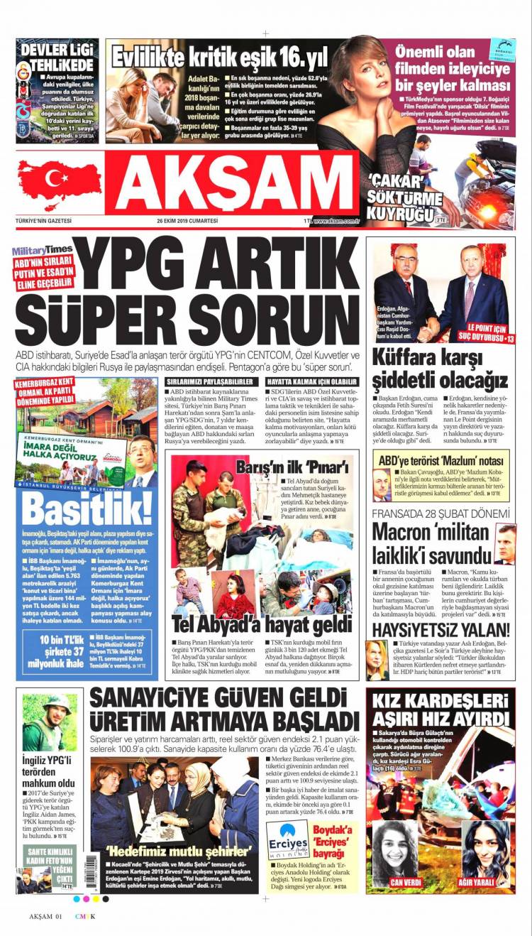 * Günün Ulusal Gazete Manşetleri – 26 10 2019Ulusal Gazetelerin 1. sayfaları Haber Merkezi Yayınlanma: 26.10.2019 - 11:50 Son güncellenme: 29.01.2025 - 00:46 Akşam