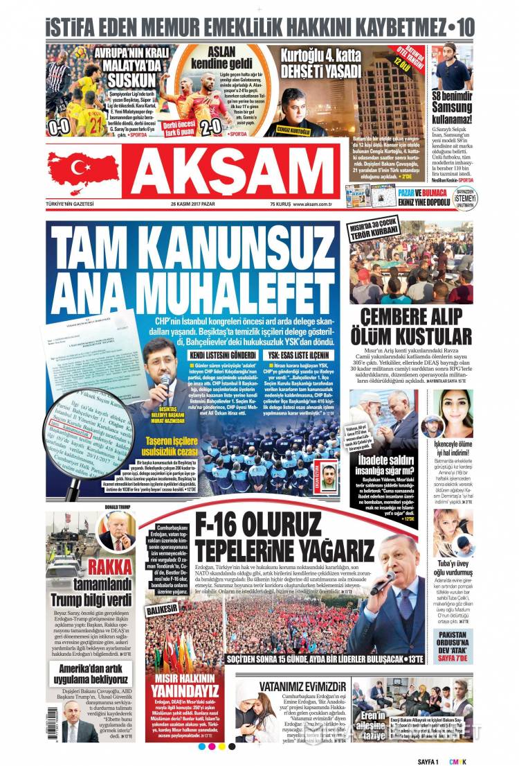 * Günün Ulusal Gazete Manşetleri – 26 11 2017Ulusal Gazetelerin 1. sayfaları Haber Merkezi Yayınlanma: 26.11.2017 - 11:50 Son güncellenme: 29.01.2025 - 17:13 Akşam