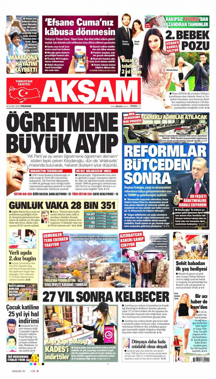 * Günün Ulusal Gazete Manşetleri – 26 11 2020Ulusal Gazetelerin 1. sayfaları Haber Merkezi Yayınlanma: 26.11.2020 - 11:50 Son güncellenme: 28.01.2025 - 19:22 Akşam