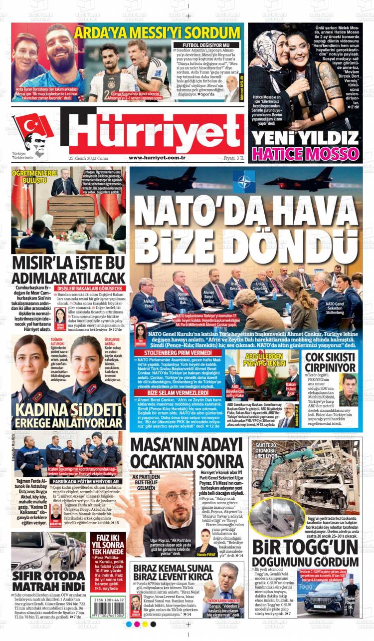* Günün Ulusal Gazete Manşetleri – 26 11 2022Ulusal Gazetelerin 1. sayfaları Haber Merkezi Yayınlanma: 26.11.2022 - 11:50 Son güncellenme: 28.01.2025 - 09:10 Hürriyet