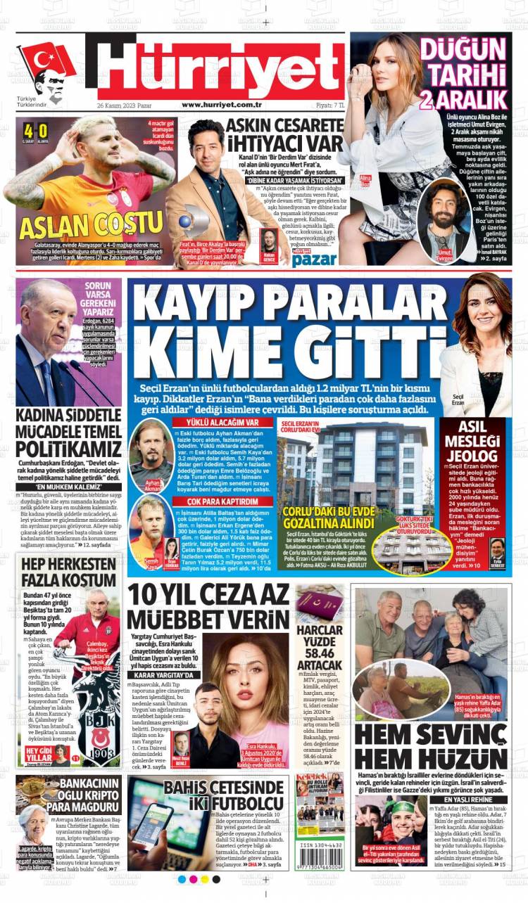 * Günün Ulusal Gazete Manşetleri – 26 11 2023Ulusal Gazetelerin 1. sayfaları Haber Merkezi Yayınlanma: 26.11.2023 - 11:50 Son güncellenme: 28.01.2025 - 04:17 Hürriyet