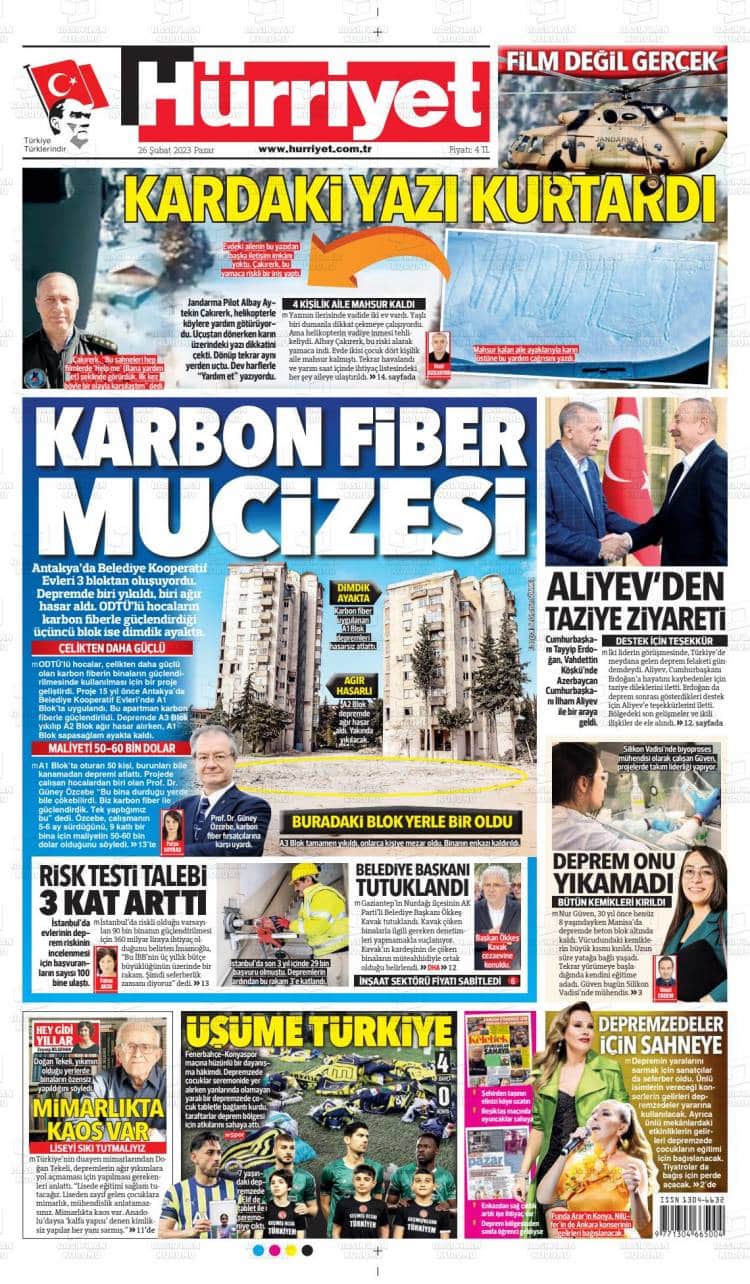 * Günün Ulusal Gazete Manşetleri – 27 02 2023Ulusal Gazetelerin 1. sayfaları Haber Merkezi Yayınlanma: 27.02.2023 - 11:50 Son güncellenme: 28.01.2025 - 08:00 Hürriyet