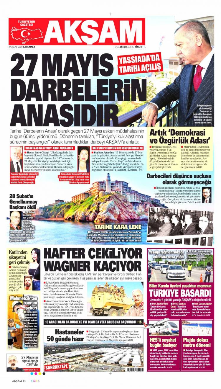 * Günün Ulusal Gazete Manşetleri – 27 05 2020Ulusal Gazetelerin 1. sayfaları Haber Merkezi Yayınlanma: 27.05.2020 - 11:50 Son güncellenme: 28.01.2025 - 22:08 Akşam