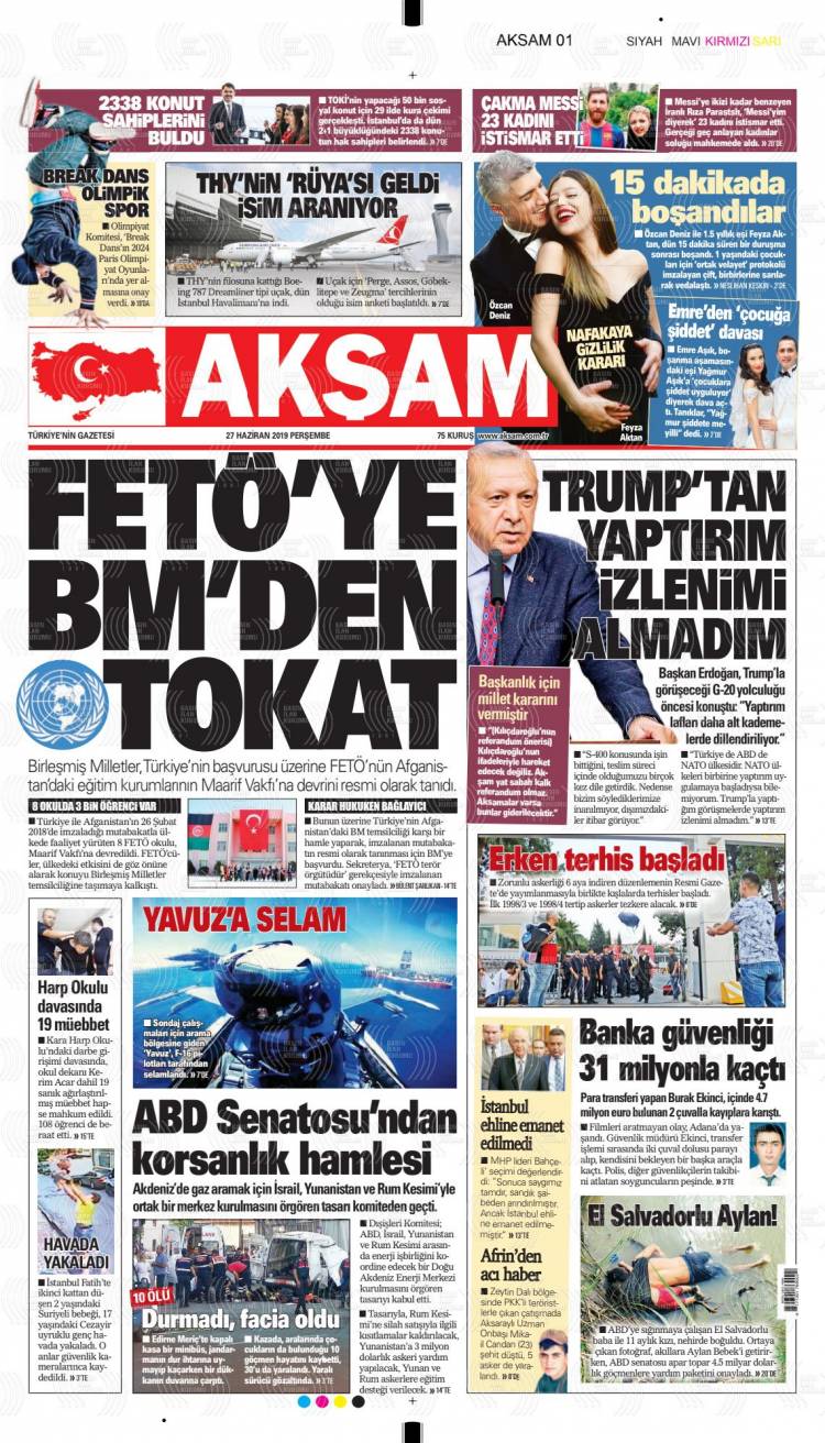* Günün Ulusal Gazete Manşetleri – 27 06 2019Ulusal Gazetelerin 1. sayfaları Haber Merkezi Yayınlanma: 27.06.2019 - 11:50 Son güncellenme: 29.01.2025 - 02:27 Akşam