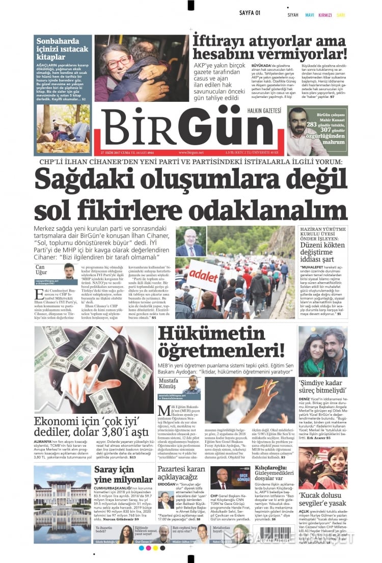 * Günün Ulusal Gazete Manşetleri – 27 10 2017Ulusal Gazetelerin 1. sayfaları Haber Merkezi Yayınlanma: 27.10.2017 - 11:50 Son güncellenme: 29.01.2025 - 18:09 Birgün