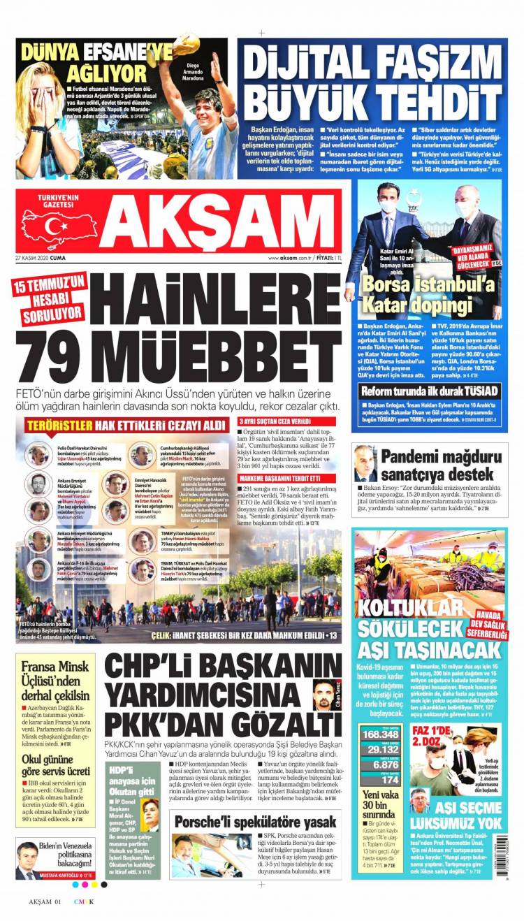 * Günün Ulusal Gazete Manşetleri – 27 11 2020Ulusal Gazetelerin 1. sayfaları Haber Merkezi Yayınlanma: 27.11.2020 - 11:50 Son güncellenme: 28.01.2025 - 19:21 Akşam