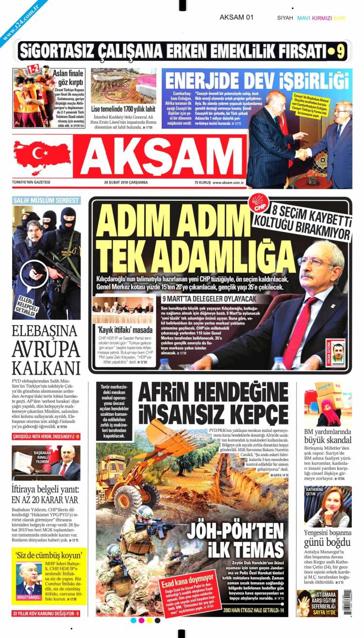 Günün Ulusal Gazete Manşetleri – 28 02 2018Ulusal Gazetelerin 1. sayfaları Haber Merkezi Yayınlanma: 28.02.2018 - 11:50 Son güncellenme: 29.01.2025 - 11:39 Akşam