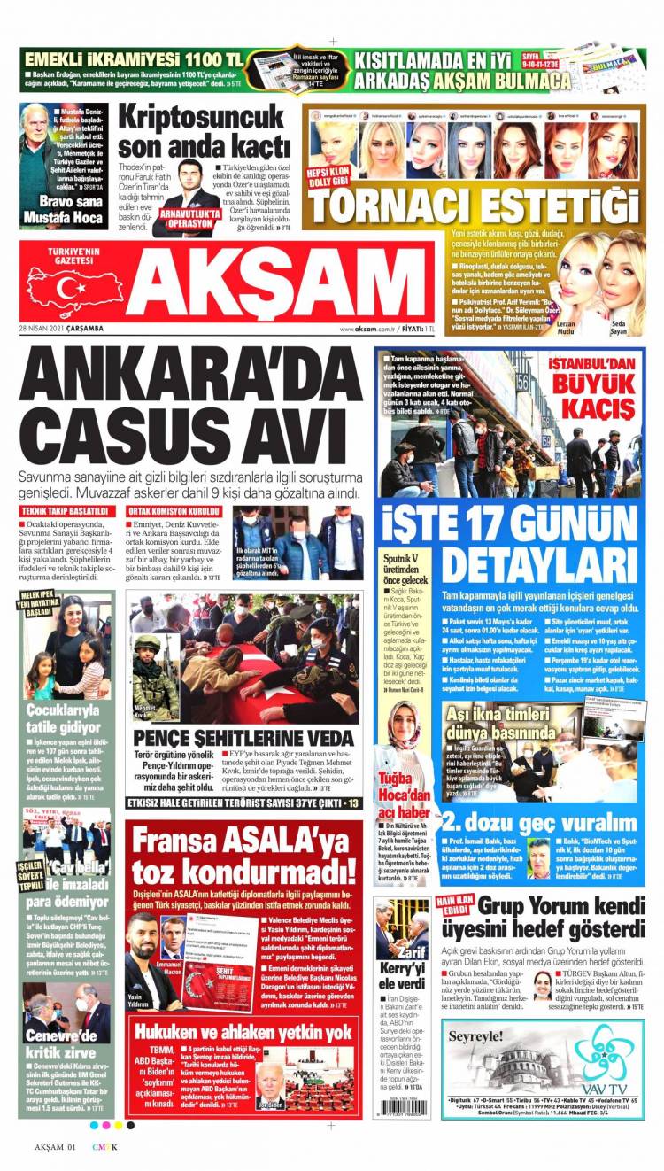 * Günün Ulusal Gazete Manşetleri – 28 04 2021Ulusal Gazetelerin 1. sayfaları Haber Merkezi Yayınlanma: 28.04.2021 - 11:50 Son güncellenme: 28.01.2025 - 17:12 Akşam