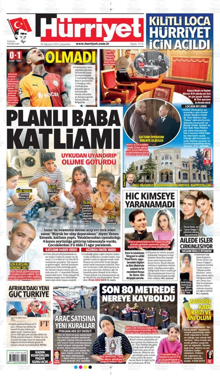* Günün Ulusal Gazete Manşetleri – 28 08 2024Ulusal Gazetelerin 1. sayfaları Haber Merkezi Yayınlanma: 28.08.2024 - 11:50 Son güncellenme: 28.01.2025 - 00:21 Hürriyet