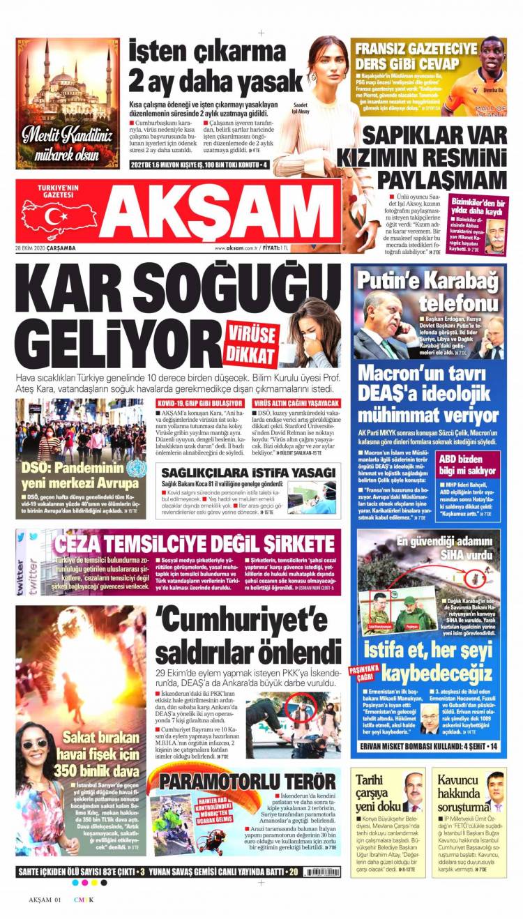 Günün Ulusal Gazete Manşetleri – 28 10 2020Ulusal Gazetelerin 1. sayfaları Haber Merkezi Yayınlanma: 28.10.2020 - 11:50 Son güncellenme: 28.01.2025 - 19:47 Akşam