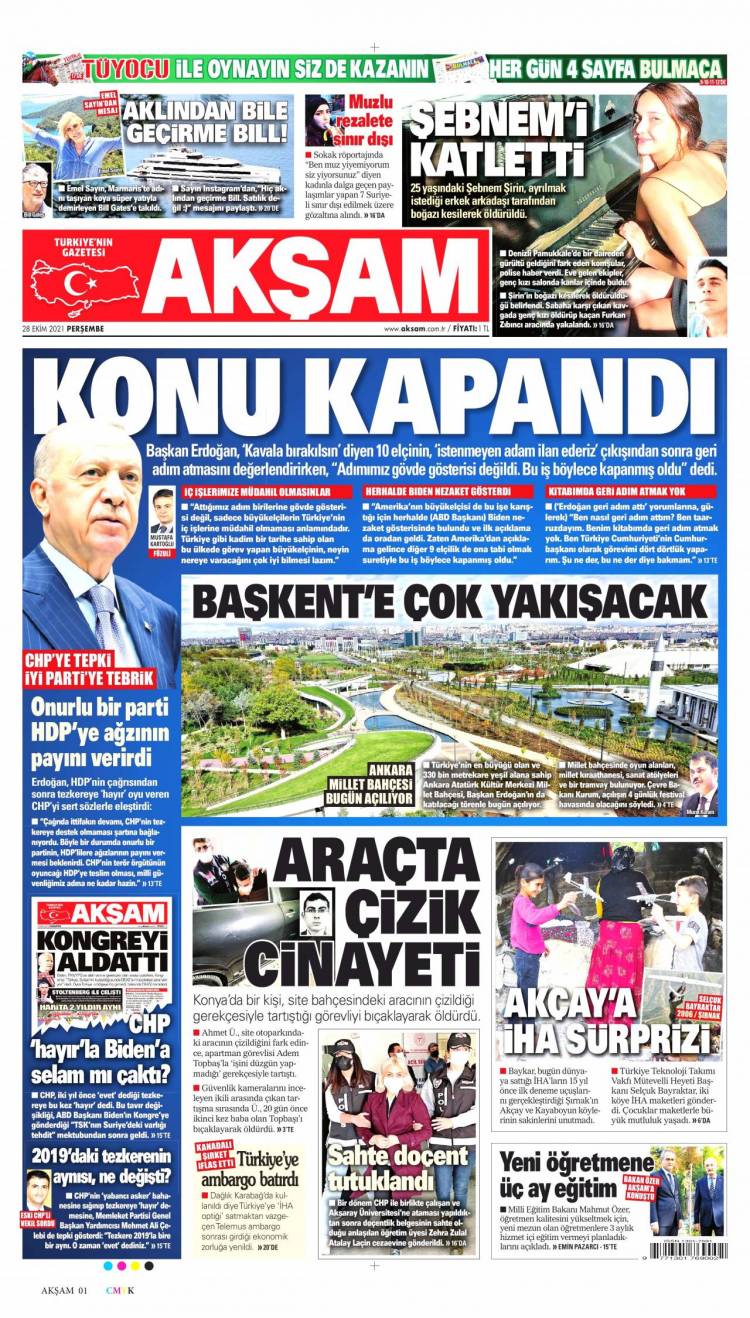 * Günün Ulusal Gazete Manşetleri – 28 10 2021Ulusal Gazetelerin 1. sayfaları Haber Merkezi Yayınlanma: 28.10.2021 - 11:50 Son güncellenme: 28.01.2025 - 14:39 Akşam
