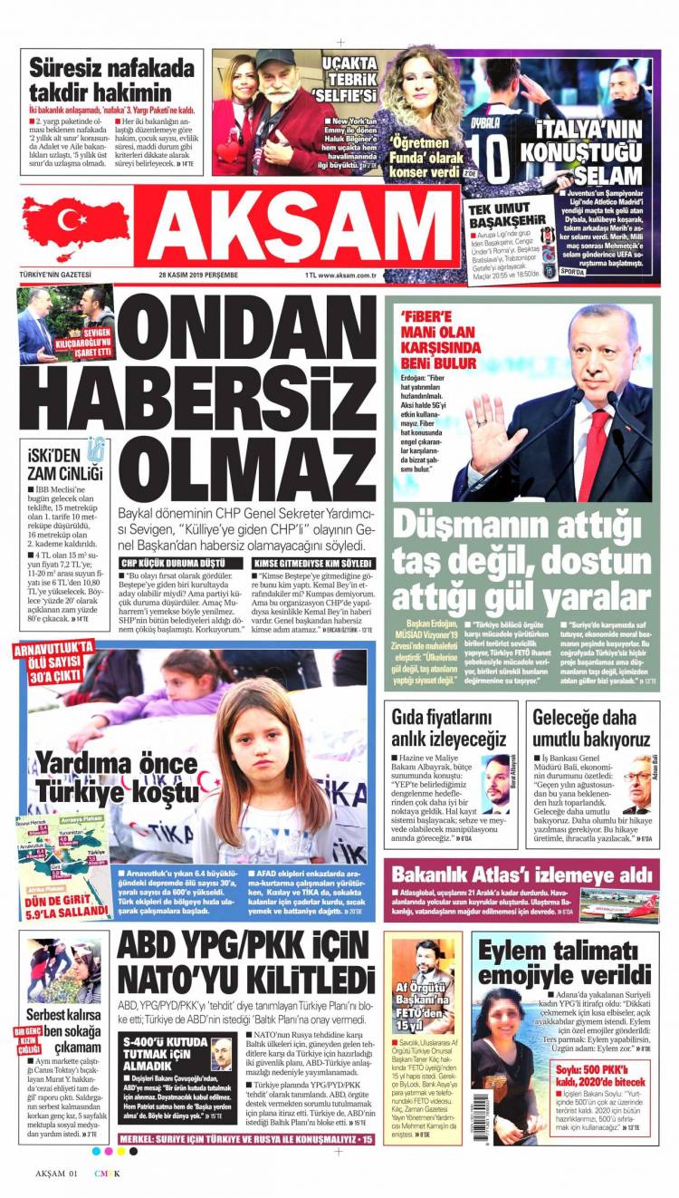 * Günün Ulusal Gazete Manşetleri – 28 11 2019Ulusal Gazetelerin 1. sayfaları Haber Merkezi Yayınlanma: 28.11.2019 - 11:50 Son güncellenme: 29.01.2025 - 00:19 Akşam