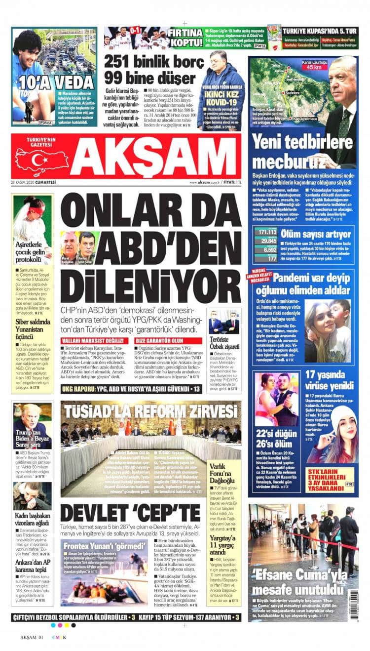 * Günün Ulusal Gazete Manşetleri – 28 11 2020Ulusal Gazetelerin 1. sayfaları Haber Merkezi Yayınlanma: 28.11.2020 - 11:50 Son güncellenme: 28.01.2025 - 19:20 Akşam