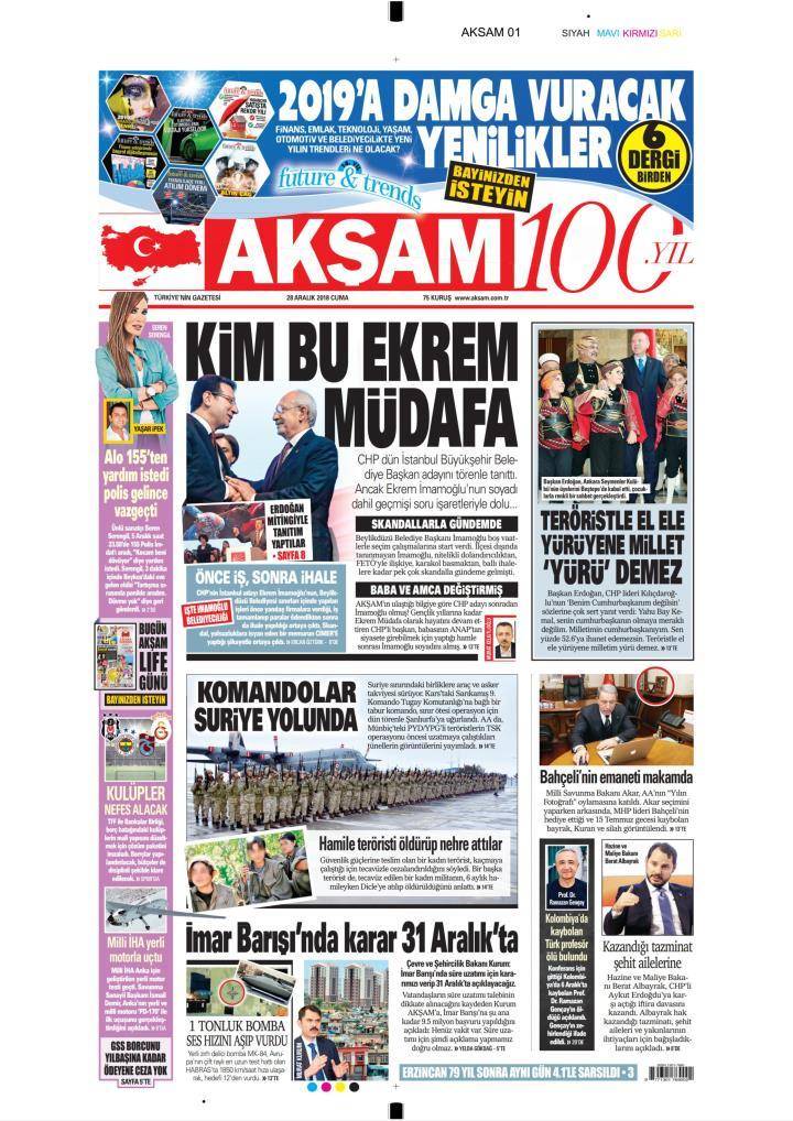 * Günün Ulusal Gazete Manşetleri – 28 12 2018Ulusal Gazetelerin 1. sayfaları Haber Merkezi Yayınlanma: 28.12.2018 - 11:50 Son güncellenme: 29.01.2025 - 05:16 Akşam