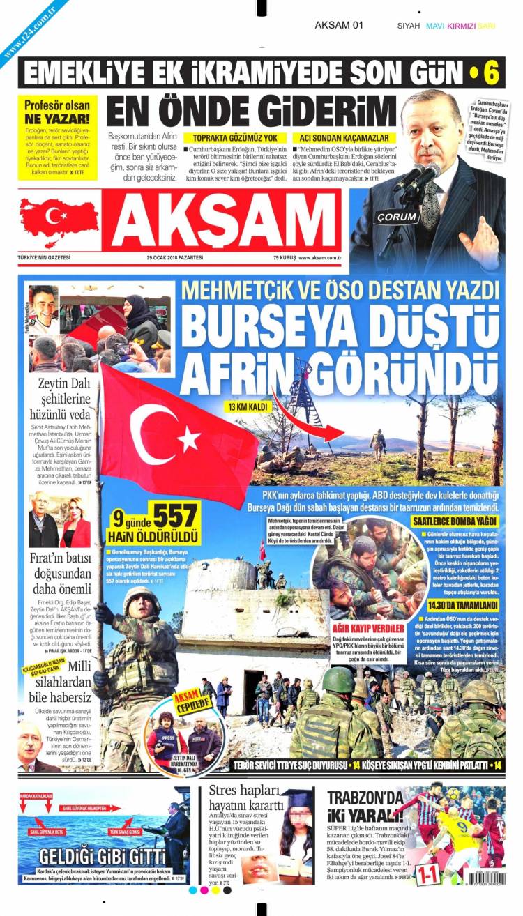 * Günün Ulusal Gazete Manşetleri – 29 01 2018Ulusal Gazetelerin 1. sayfaları Haber Merkezi Yayınlanma: 29.01.2018 - 11:50 Son güncellenme: 29.01.2025 - 12:45 Akşam